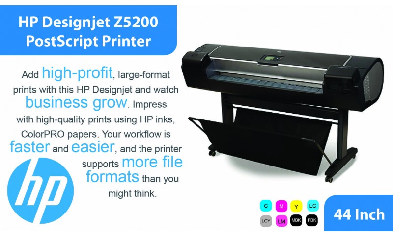 The hp designjet z5200 printer is a color inkjet printer designed for printing high quality images on paper up to 1118 mm 44 in wide.